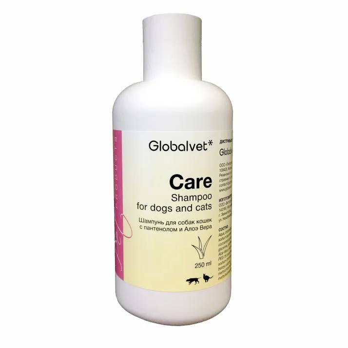 Шампунь Globalvet с Пантенолом и Алоэ Вера прекрасно подойдет всем животным, коже которых требуется внимательный и тщательный уход, укрепление корней, восстановление структуры ослабленных и поврежденных волос.
