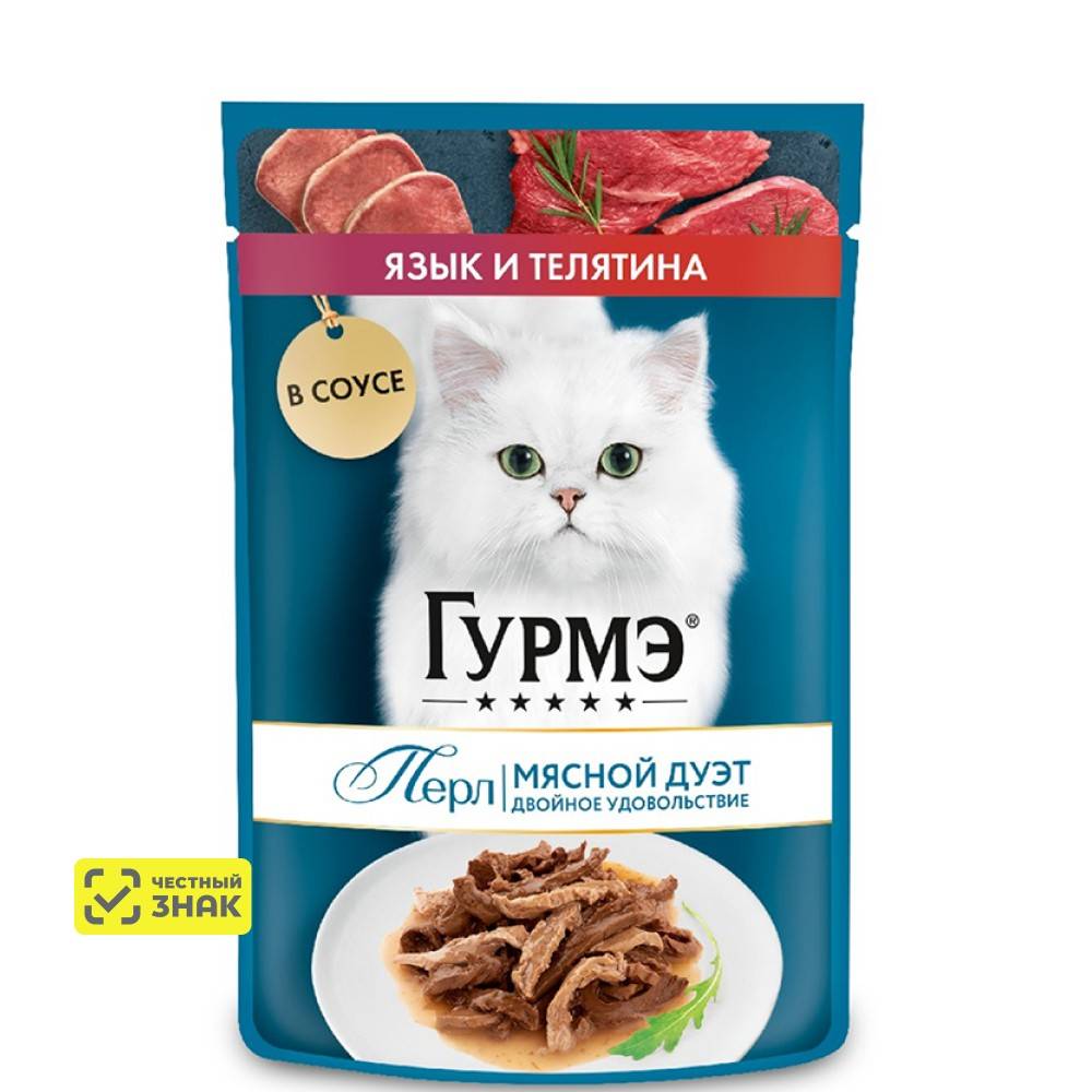 Влажный корм для взрослых кошек ГУРМЭ® создан специально для питомцев, которые ценят качество и разнообразие вкусов и текстур. ГУРМЭ® Перл Мясной Дуэт — это нежные ломтики мини-филе с изысканными комбинациями мясных вкусов языка и телятины в роскошном соусе. Мы заботимся о том, чтобы корм для вашего пушистого друга был не только питательным, но и ощущался питомцем, как гастрономический праздник. Именно поэтому эксперты в сфере кормов для животных создали гармоничное сочетание сразу двух вкусов, которые превращаются в настоящий мясной дуэт, удовлетворяя самым изысканным предпочтениям кошек.