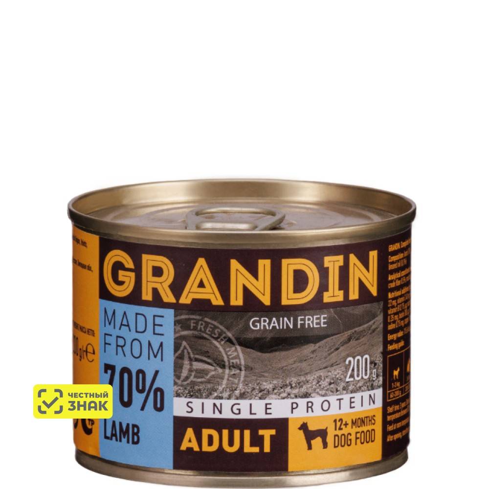 Grandin полноценный консервированный корм для собак из свежего мяса ягнёнка составит отличную основу повседневного рациона питомца.
