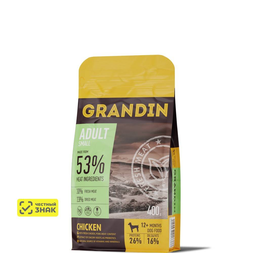 GRANDIN ADULT SMALL CHICKEN – это полноценный сбалансированный рацион для взрослых собак мелких пород. Новая улучшенная формула питания: свежее мясо цыплёнка в миксе с полезными составят максимально правильный рацион для вашего питомца!