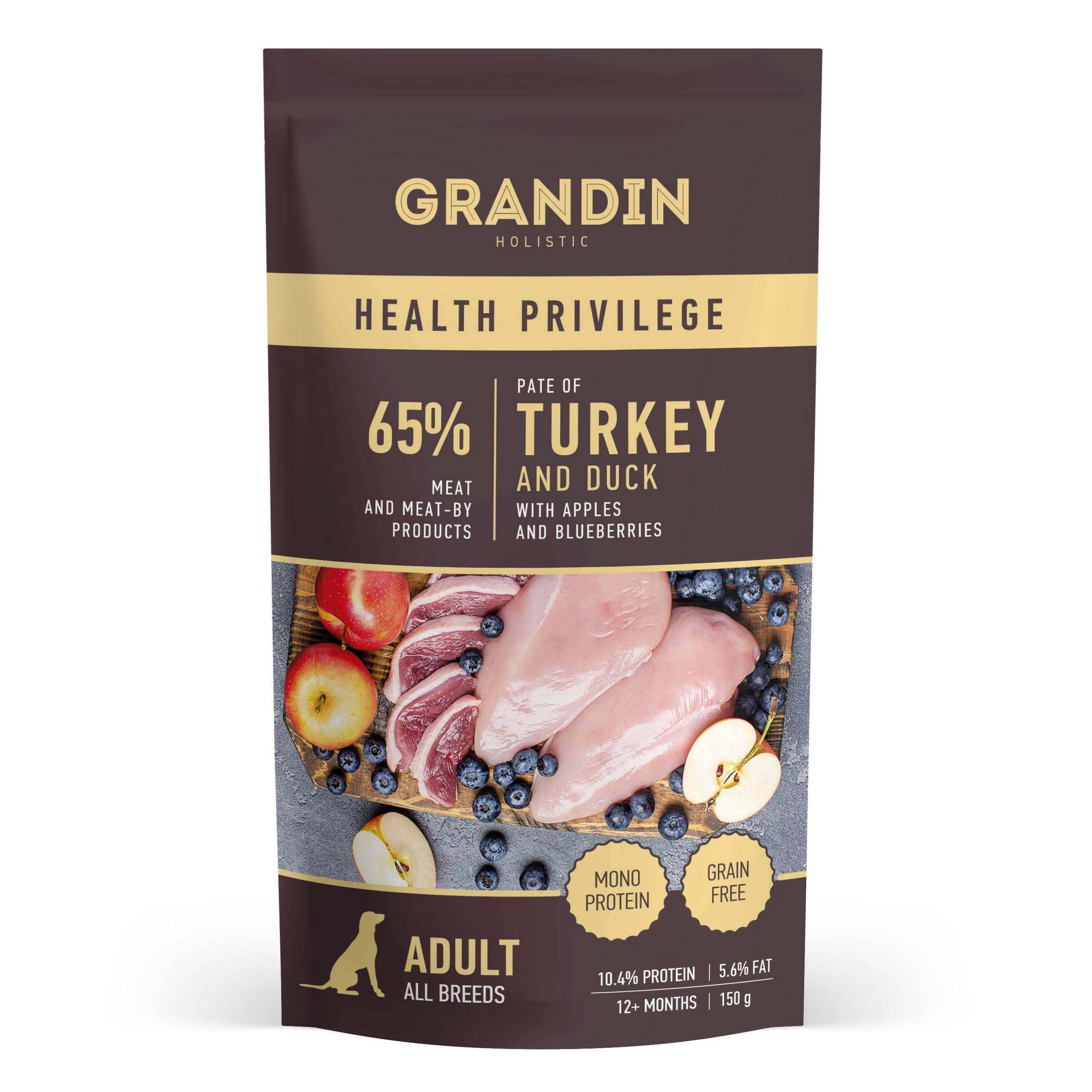 Grandin Holistic пауч патэ из мяса индейки и утки с яблоками и голубикой для собак.