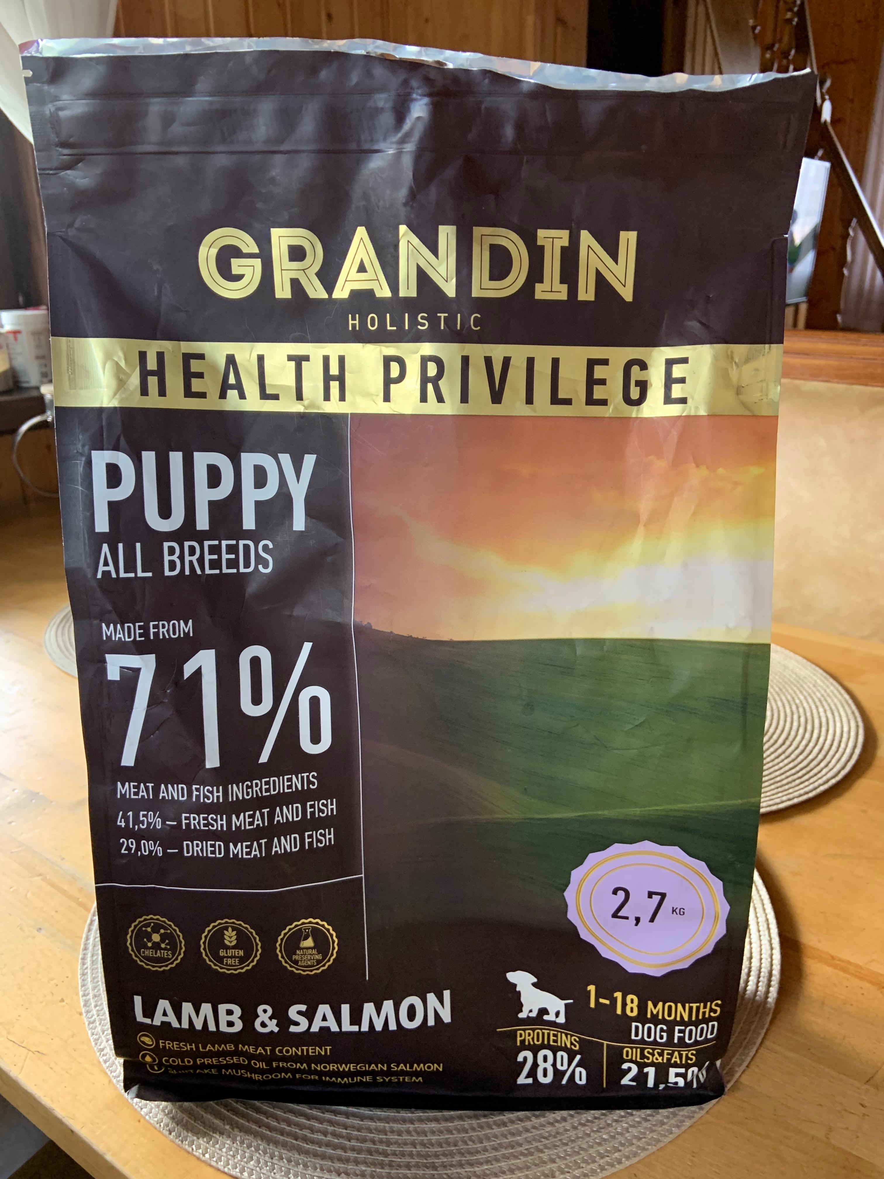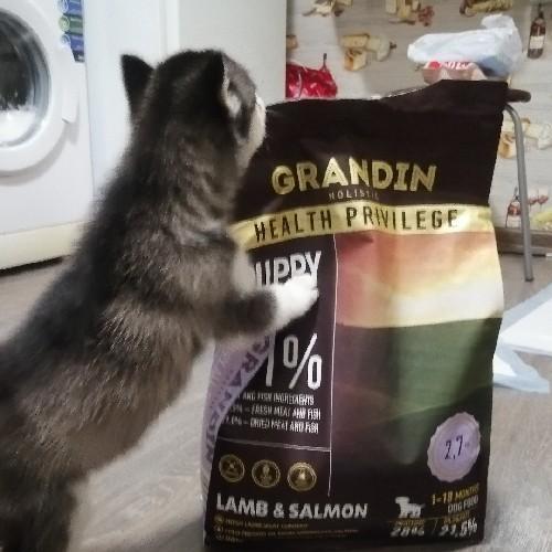 Всем добрый день, пользовались кормом Grandin, когда наш питомец был щенком, за это время корм зарекомендовал себя с хорошей стороны, своим составом, не вызвал аллергии. Для щенков с низким уровнем активности может показаться тяжеловат, из за большого количества натуральных ингредиентов и белка в составе.Комментарий