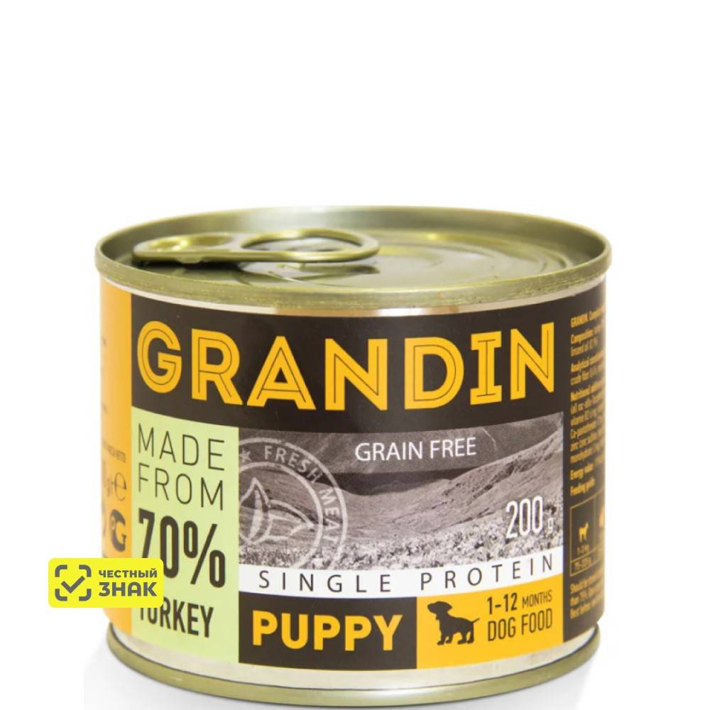 GRANDIN полноценный консервированный корм для собак на основе мяса индейки составит отличную основу для повседневного питания подрастающего питомца.