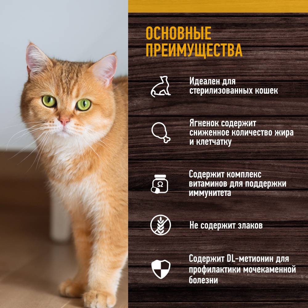• Лучший рацион для стерилизованных кошек.