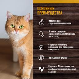 Полнорационный влажный корм для стерилизованных кошек. Не содержит злаков. Кусочки с ягненком в соусе для взрослых кошек. Влажный корм для стерилизованных кошек создан для профилактики избыточного веса. Корм содержит сниженное количество жира и клетчатку, которая стимулирует эффект насыщения и способствует нормализации пищеварения. Корм содержит комплекс витаминов для поддержки иммунитета и DL-метионин для профилактики мочекаменной болезни.