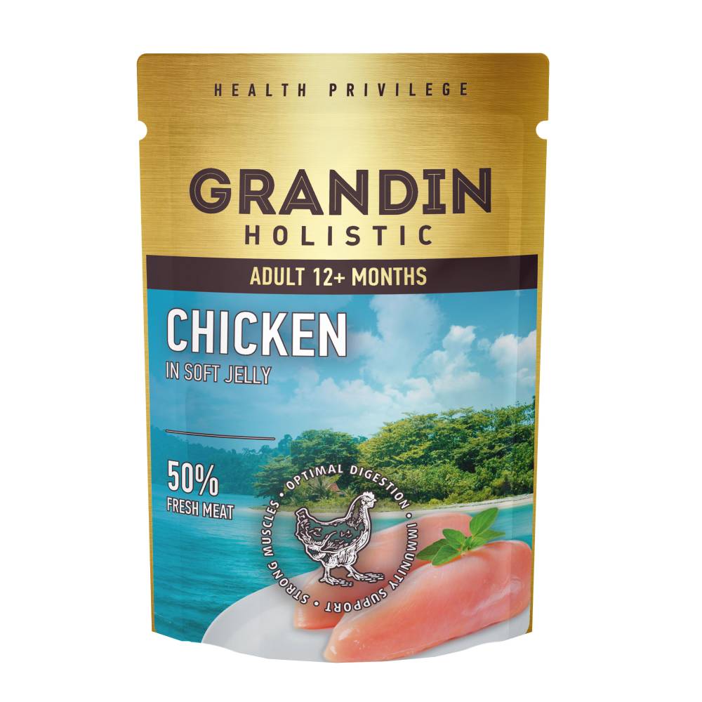 Grandin Holistic Health Privilege — вкусный и натуральный рацион супер премиум класса для взрослых кошек. Корм изготовлен из свежего мяса курицы с добавлением аппетитного нежного желе, которое придает корму превосходный вкус.