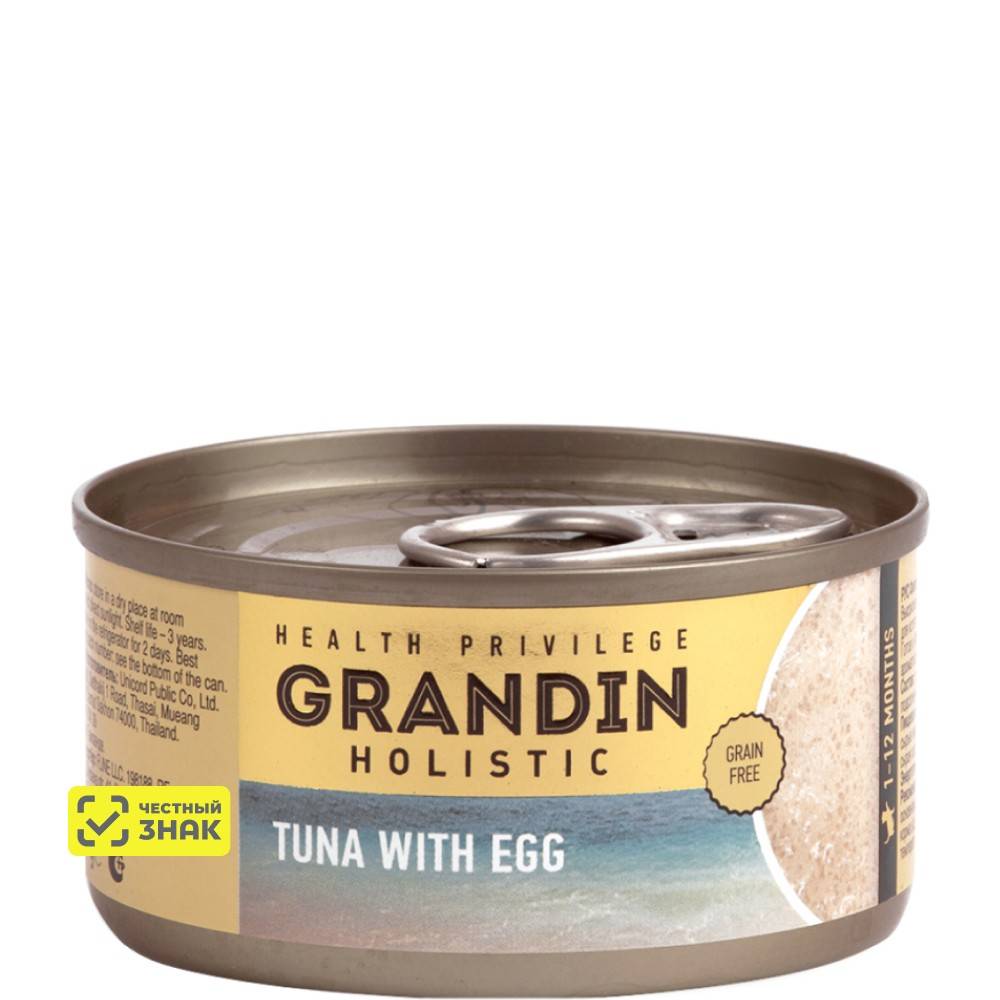 GRANDIN Holistic Health Privilege Мусс из филе тунца с яйцом - высококачественный консервированный корм для котят с повышенным содержанием рыбы.