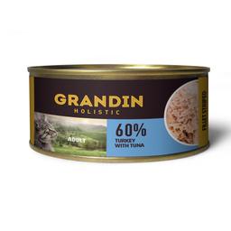GRANDIN Мясные волокна филе индейки с тунцом — высококачественный консервированный корм для взрослых кошек с повышенным содержанием мяса.