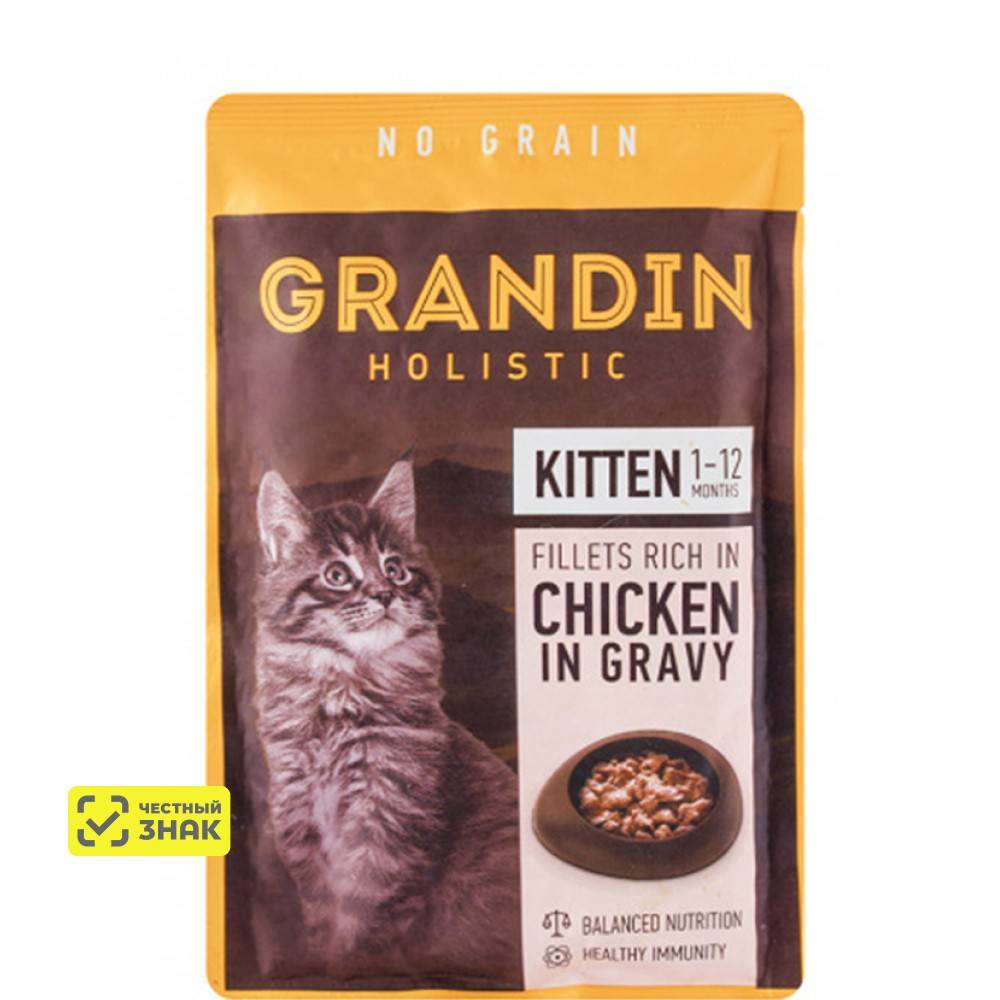 Котенок 4 месяца ест с удовольствиемДолго подбирала сухой корм для котенка. Отказывался от всего и выбрал в итоге grandin. КомментарийДостоинства: