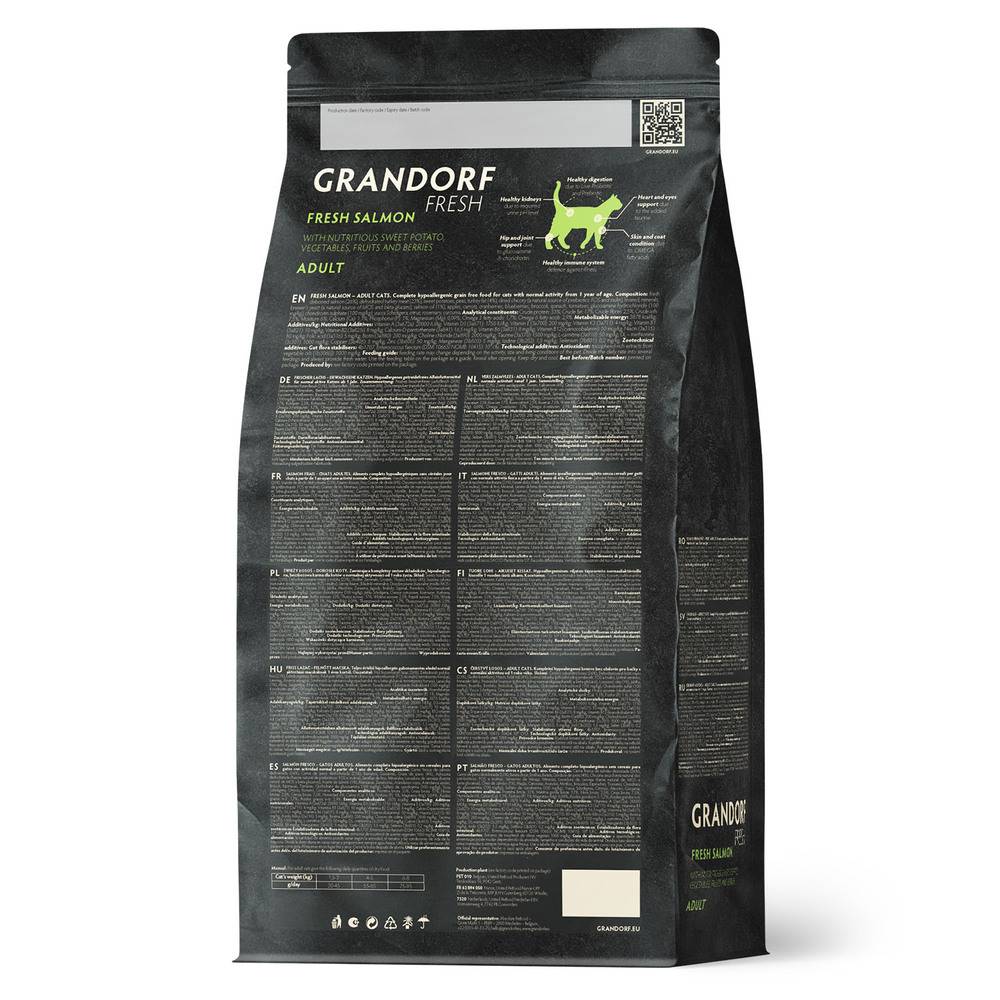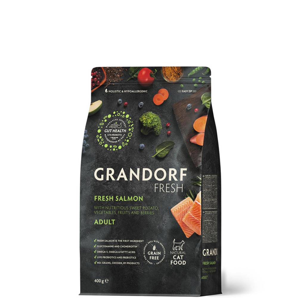 Благодаря беззерновому и безглютеновому составу корма Grandorf FRESH легко усваиваются и отлично подходят для животных с чувствительным пищеварением или пищевой аллергией.