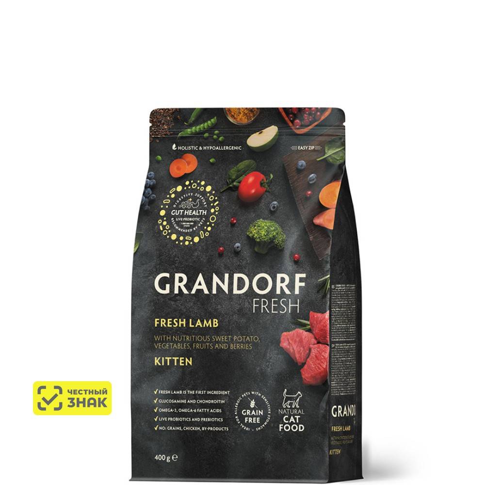 GRANDORF Fresh Kitten Сухой корм для котят от 3 недель, беременных и кормящих кошек, с ягненком и бататом, 400 гр.