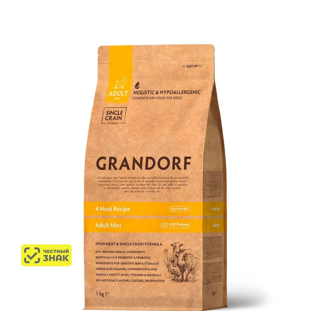 Сухой корм для взрослых собак мелких пород Четыре вида мяса. Для собак мини пород от 1 года.