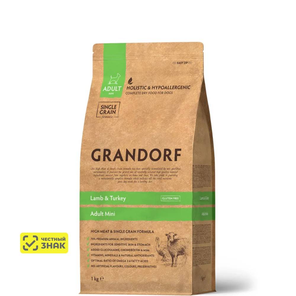 GRANDORF Holistic Adult Mini Сухой корм для взрослых собак мелких пород, с ягненком и индейкой, 1 кг