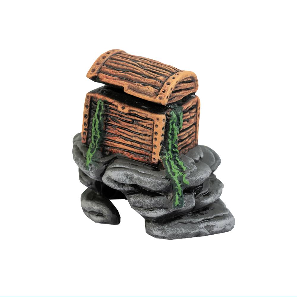 - Сундук на камнях выполнен из экологически чистой глины, которая не навредит жизни водных обитателей и аквариумным растениям.