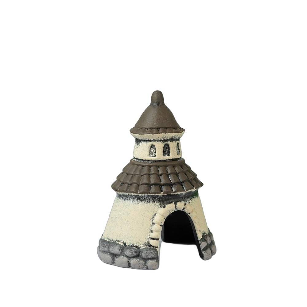 - Грот в форме замка подойдёт для аквариума любого размера.