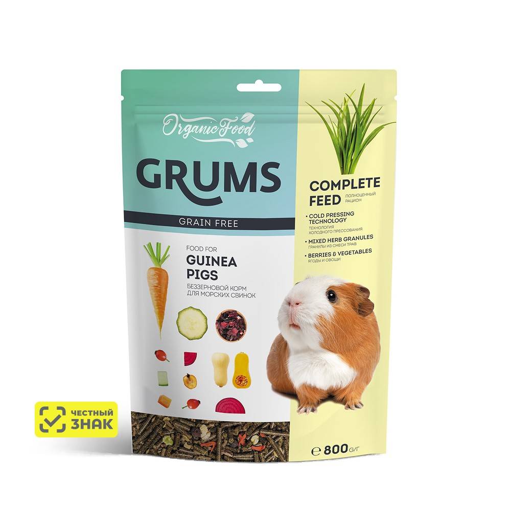 Полнорационный беззерновой гранулированный корм GRUMS для морских свинок разработан с учетом их естественных потребностей. Сбалансированная формула поддерживает здоровье, укрепляет иммунитет и способствует правильному пищеварению питомца.