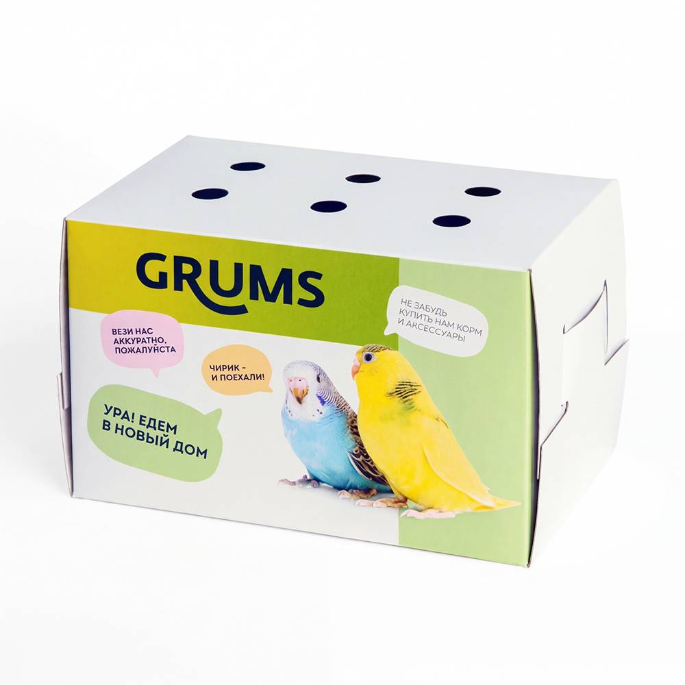 Одноразовая переноска для птиц и грызунов от бренда GRUMS подойдет для безопасной транспортировки питомцев.
