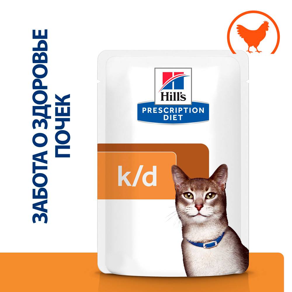 Влажный диетический корм для кошек (пауч) Hill's Prescription Diet k/d - диетическое питание, которое помогает сохранить жизненно важные функции почек вашей кошки, повысить аппетит и увеличить потребление пищи. Питание с клинически доказанной эффективностью, стимулирует аппетит и помогает улучшить качество и увеличить продолжительность жизни. Prescription Diet k/d - влажный корм при хронической болезни почек изготовлен cо вкусом курицы имеет восхитительный вкус, который понравится вашей кошке. Проконсультируйтесь с ветеринарным специалистом, чтобы узнать, как Hill's Prescription Diet Kidney Care Renal (Ренал) может помочь вашей кошке продолжать наслаждаться счастливой и активной жизнью.