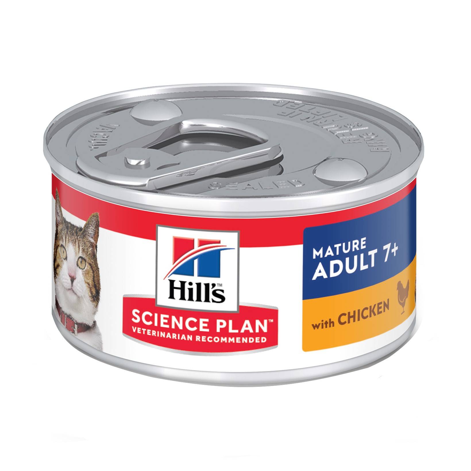 Влажный корм Hill's Science Plan для пожилых кошек (7+)для поддержания здоровья в процессе старения, паштет с курицей. Созданный с использованием качественного белка для поддержания мышечной массы, влажный корм для кошек и котов старше 7 лет HILL'S SCIENCE PLAN Mature Adult 7+ в форме консервы специально разработан для пожилых кошек и котов. Легко усваиваемый корм для пожилых кошек, изготовленный из высококачественных ингредиентов, позволяет поддерживать мышечную массу. Побалуйте вашу кошку питанием с превосходно сбалансированным вкусом с курицей, с Антиоксидантами, омега-3 и омега-6 жирными кислотами, Витамином С+Е. Мы с гордостью представляем вам новый образ любимого корма Hill's Science Plan. В некоторых из наших кормов также изменились названия, форма гранул и формулы.
