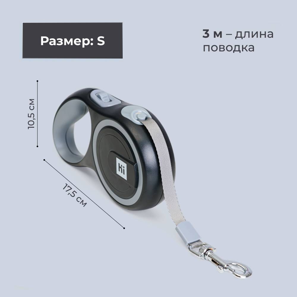 Размеры: S – 17,5х10,5 см; 3 м – длина поводка, 15 кг – максимальный вес собаки.