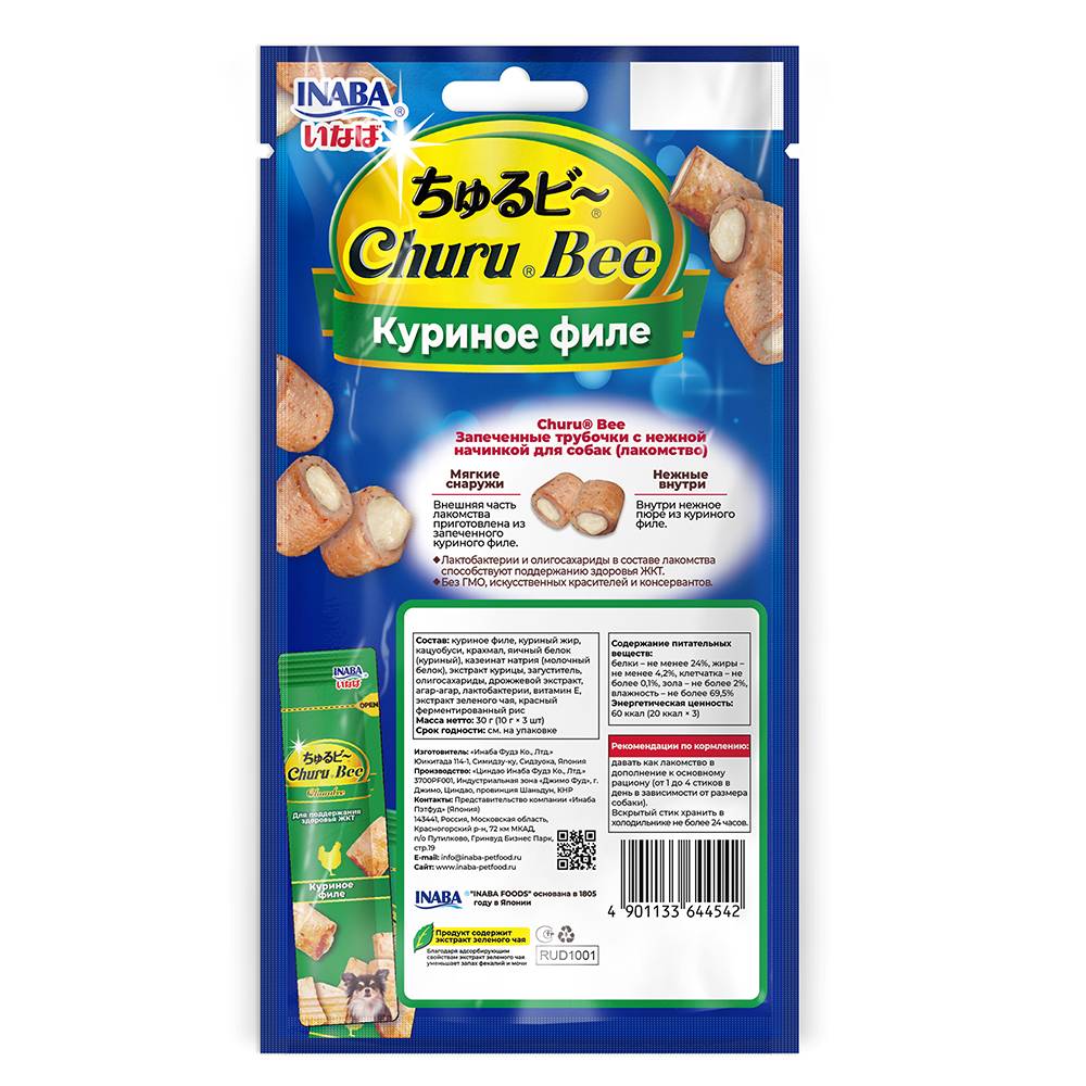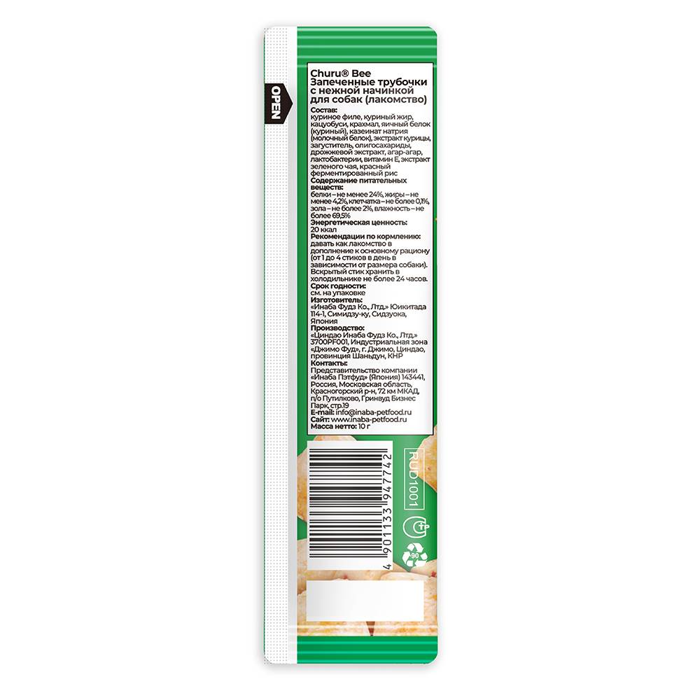 Запеченные трубочки Churu Bee (ЧУРУ БИ) с нежной кремовой начинкой на основе куриного филе от японского производителя Inaba, трубочки имеют усиленный вкус вяленого тунца кацуо, поэтому лакомство не оставит равнодушным даже самых привередливых собак.