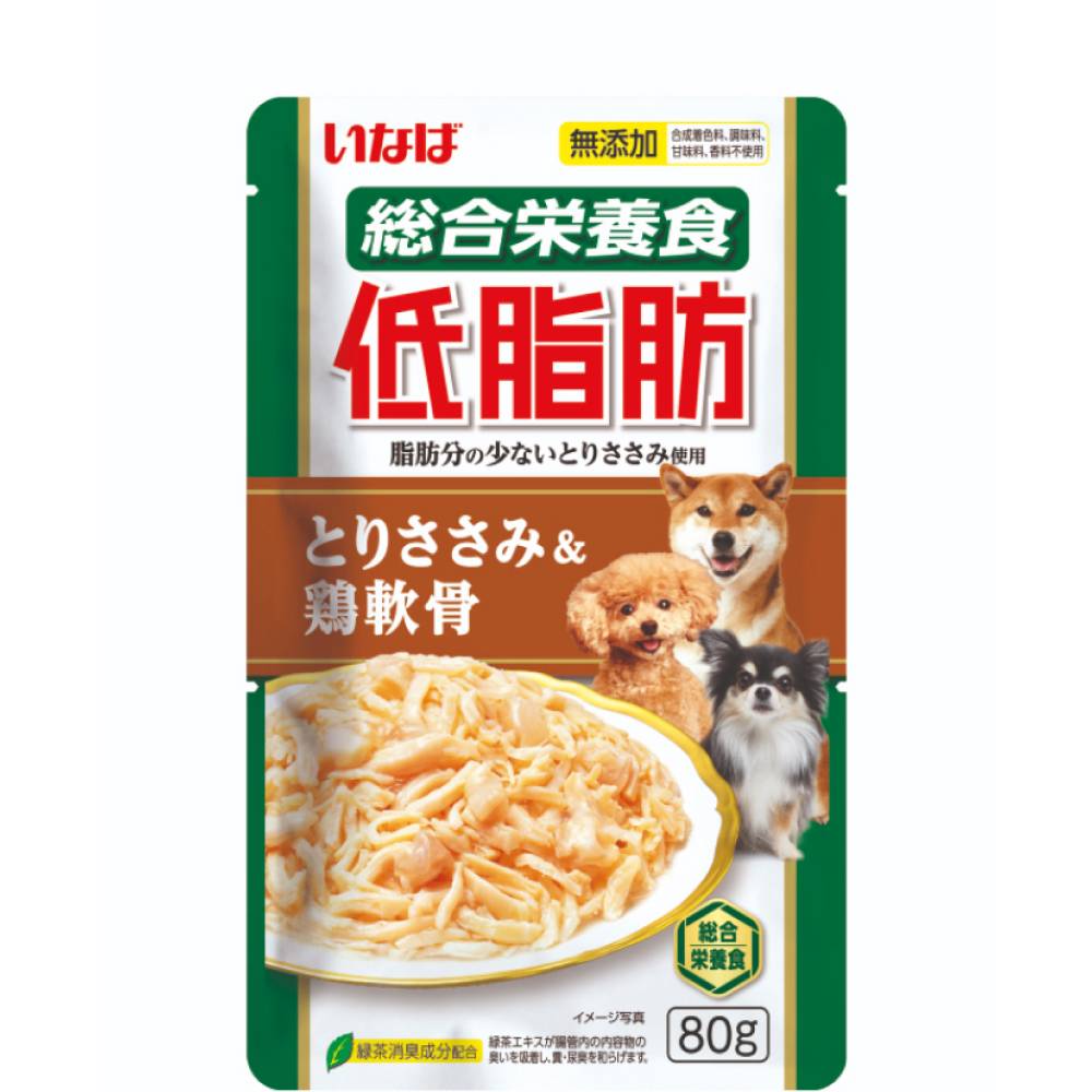Inaba Teishibo Куриное филе с куриными хрящами в пауче — это полнорационный влажный корм для собак. Приготовлен на основе кусочков филе курицы с добавлением куриных хрящей в аппетитном желе.