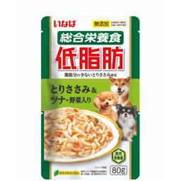 Inaba Teishibo Куриное филе с тунцом и овощами в пауче — это полнорационный влажный корм для собак. Приготовлен на основе кусочков филе курицы с добавлением тунца и овощей в аппетитном желе.