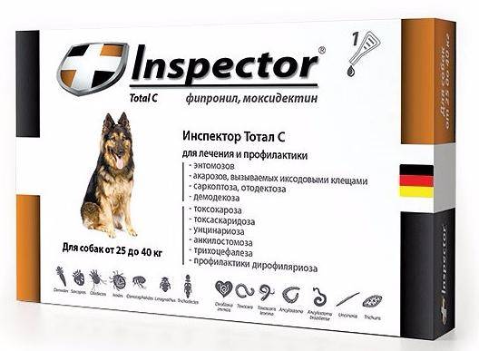 - С целью профилактики дирофиляриоза в неблагополучных по заболеванию регионах препарат применяют весенне-летне-осенний период: перед началом лета от комаров и москитов (переносчиков возбудителя D. Immitis) однократно, затем один раз в месяц и последний раз в сезоне не ранее, чем за 1 месяц после завершения лёта насекомых. Инспектор Тотал K не уничтожает половозрелых дирофилярий, но снижает количество циркулирующих в крови микрофилярий, и может быть примененен без опасений также и инвазированным животным.
