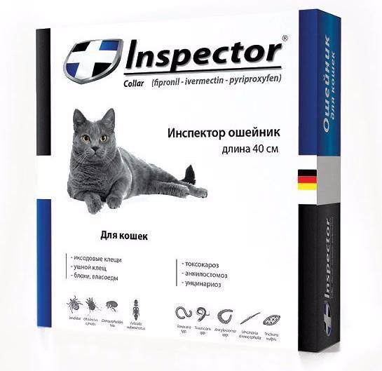 Защита от блох и клещей до 3-4 месяцев. Ошейник для кошек от блох/клещей/глистов 40 см торговой марки Inspector пропитан безопасными компонентами, эффективными против различных паразитов. При постоянном ношении вещества переносятся на кожу и шерсть животного, обеспечивая его максимальной защитой от двух до четырех месяцев. При этом не вызывает раздражений, аллергических реакций.
