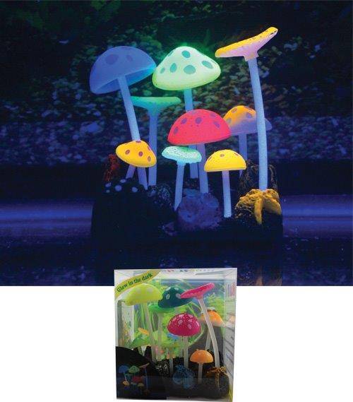 Грибы разноцветные силиконовые, с узорами, 9*7*11 см JELLY-FISH уникальное изделие для декорирования аквариумов с пресной или морской водой. Нетоксичный силикон, используемый при изготовлении изделия абсолютно безопасен для обитателей аквариума, не деформируется под воздействием воды и света. Легкая и невесомая структура силикона не перегружает интерьер аквариума. Изделия Jelly Fish смотрятся очень естественно и натурально, полностью раскрывая свой потенциал в темноте. Светящиеся грибочки превратят ваш аквариум в необычное и яркое произведение искусства.