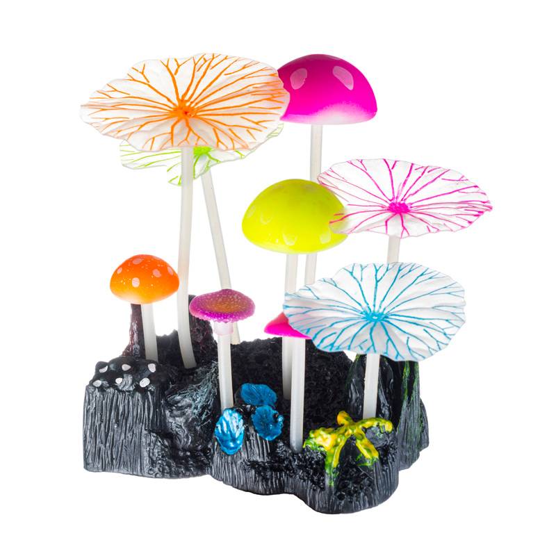 Jelly-Fish Грибы 5 шт и листья 4 шт силикон - уникальный аксессуар, который украсит любой аквариум. Изделие изготовлено из 100% силикона, который никак не влияет на качество воды, имеет абсолютно натуральный вид, в потоке воды отлично имитирует естественные движения подводного обитателя. Имеет эффект свечения, за счет чего идеально подходят для аквариумов, оборудованных специальным "ночным" освещением и для создания дизайнерского оформления.