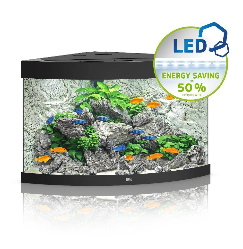 Trigon 190 LED — «младшая» модель из двух вариантов угловых аквариумов Juwel Trigon. Аквариумы Trigon имеют угловую в плане форму и выпуклое переднее стекло (форма изгиба стекла — четверть окружности).