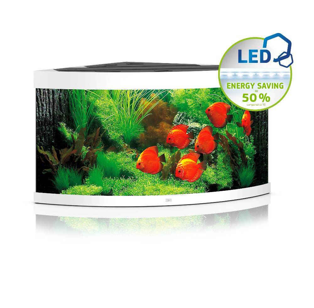 Trigon 350 LED — большая модель из двух вариантов угловых аквариумов Juwel Trigon. Аквариумы Trigon имеют угловую в плане форму и выпуклое переднее стекло (форма стекла в плане — четверть окружности).