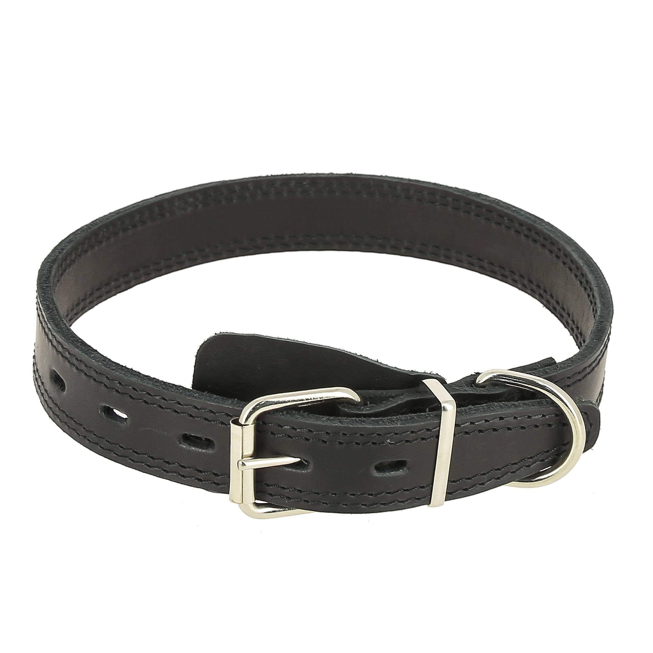 - Этот ошейник изготовлен из 2-х слоев проклеенной, а затем прошитой плотной шорно-седельной кожи высокого качества.