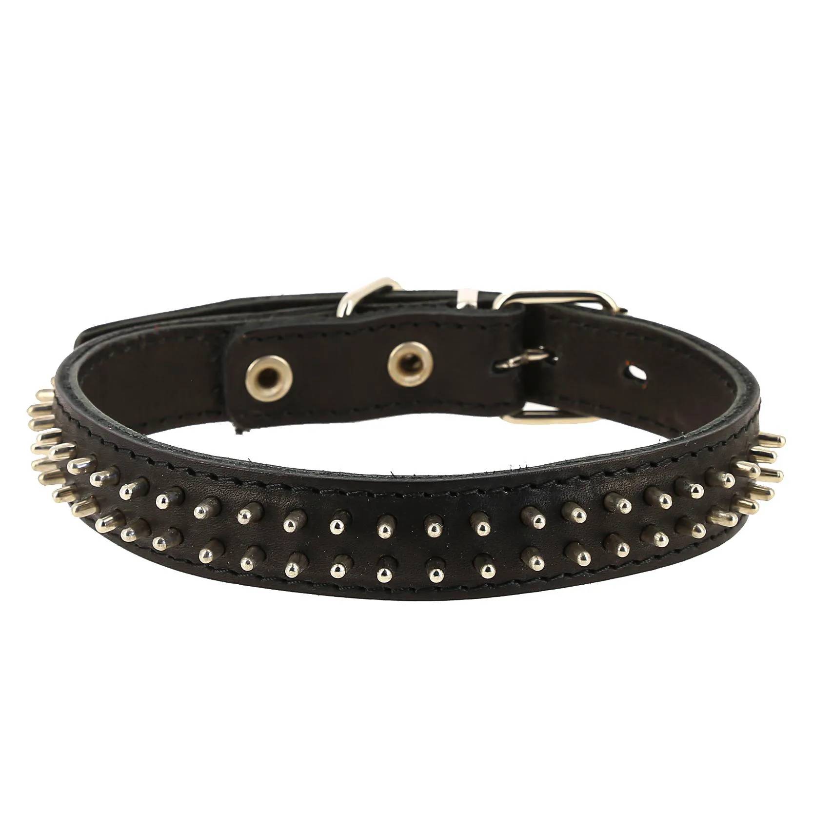 Ошейник кожаный двойной с шипами-ёж 25 мм, обхват шеи 39-46 см.