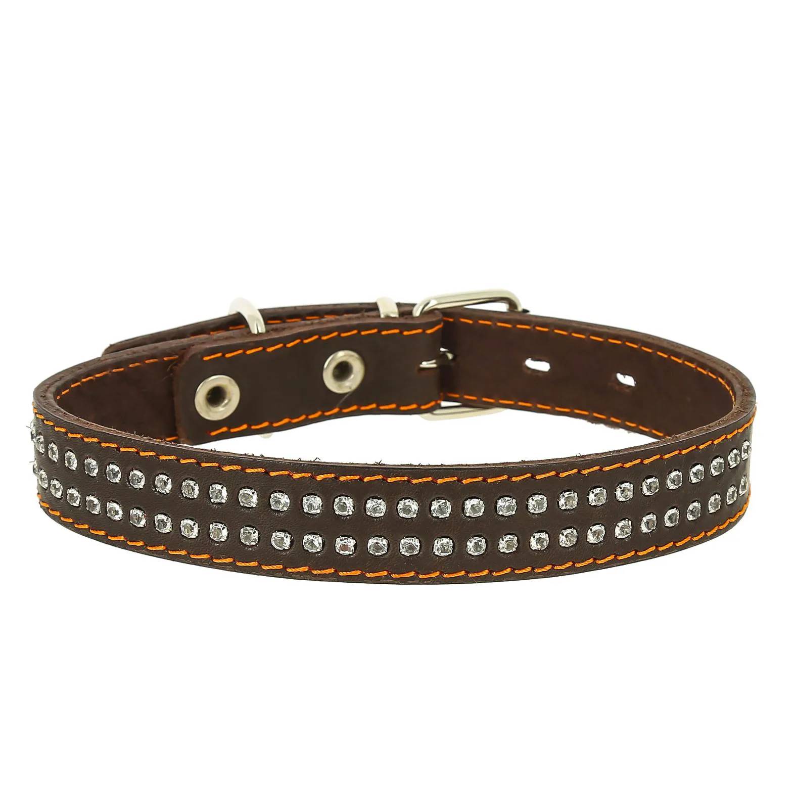 Ошейник кожаный двойной со стразами ширина 25 мм, обхват шеи 39-46 см