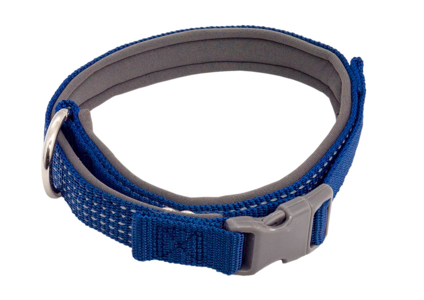 Ошейник нейлон Премиум светоотражающий с неопреновой подкладкой, 20 мм-30/50 см, синий