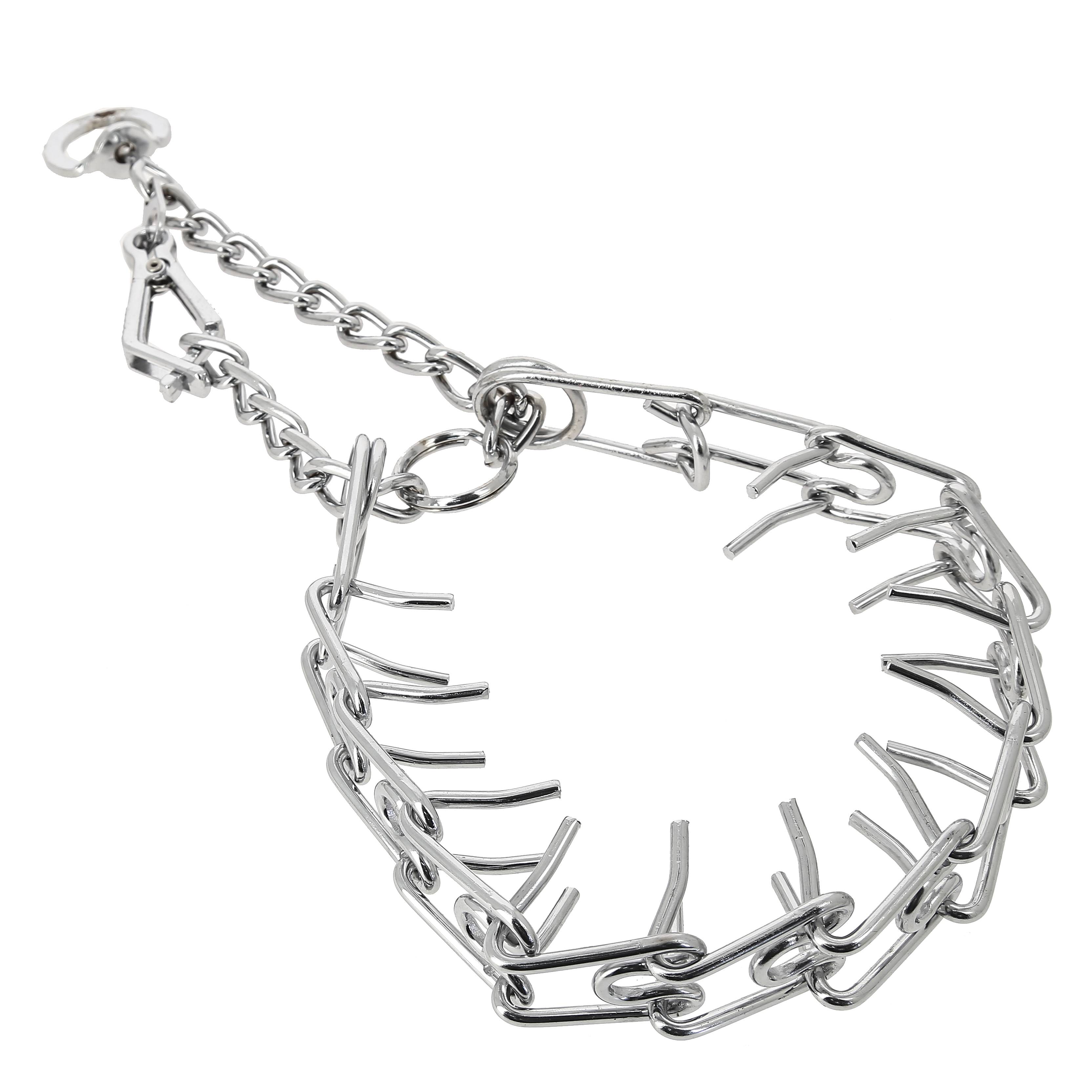- Этот строгий ошейник изготовлен из металлических нержавеющих звеньев, соединённых в конструкцию в форме гибкой металлической цепочки из 10-ти съемных звеньев с шипами на внутренней стороне.