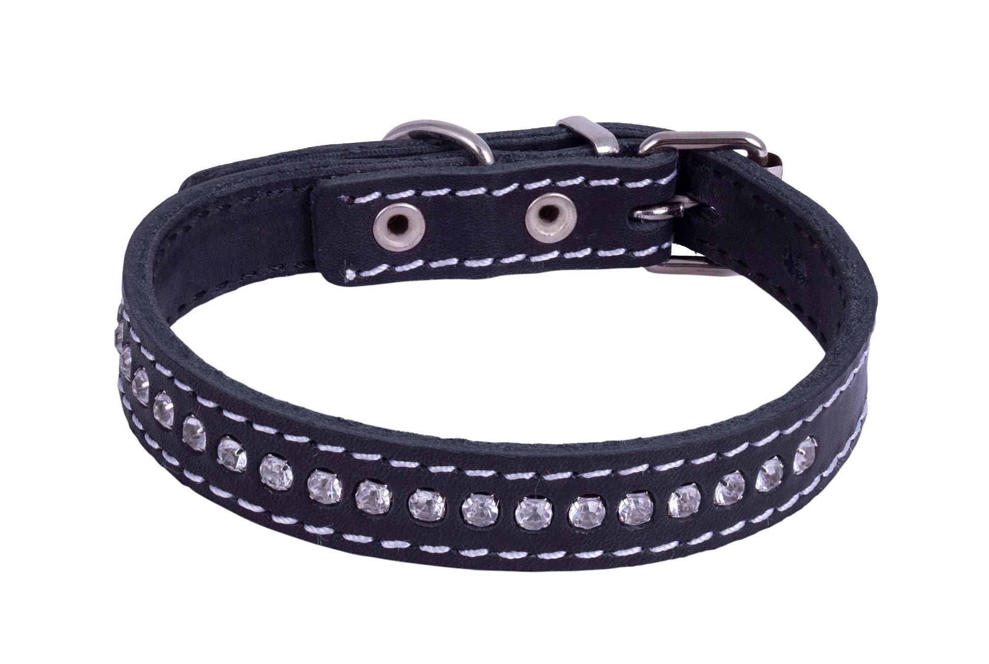 Ошейник кожаный двойной со стразами ширина 12мм обхват шеи 20-24см.