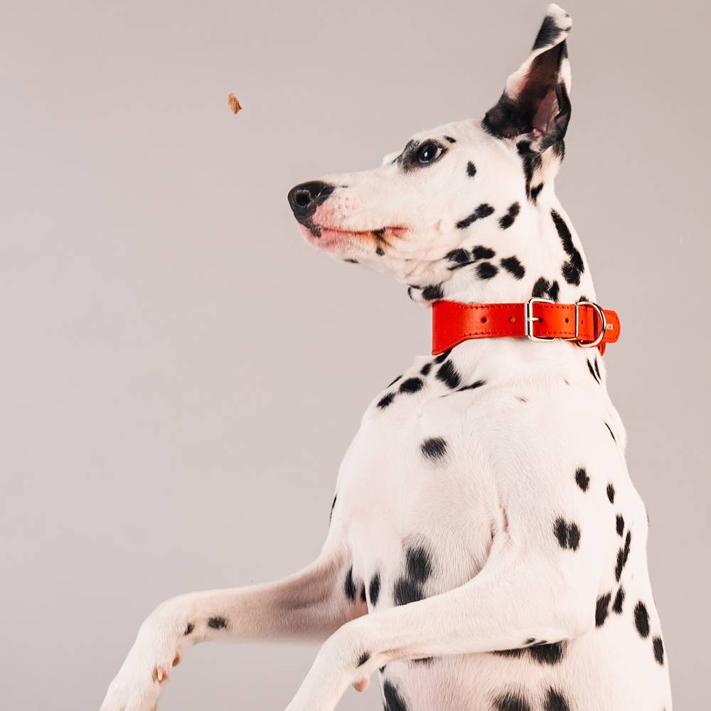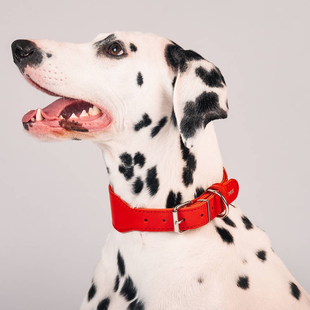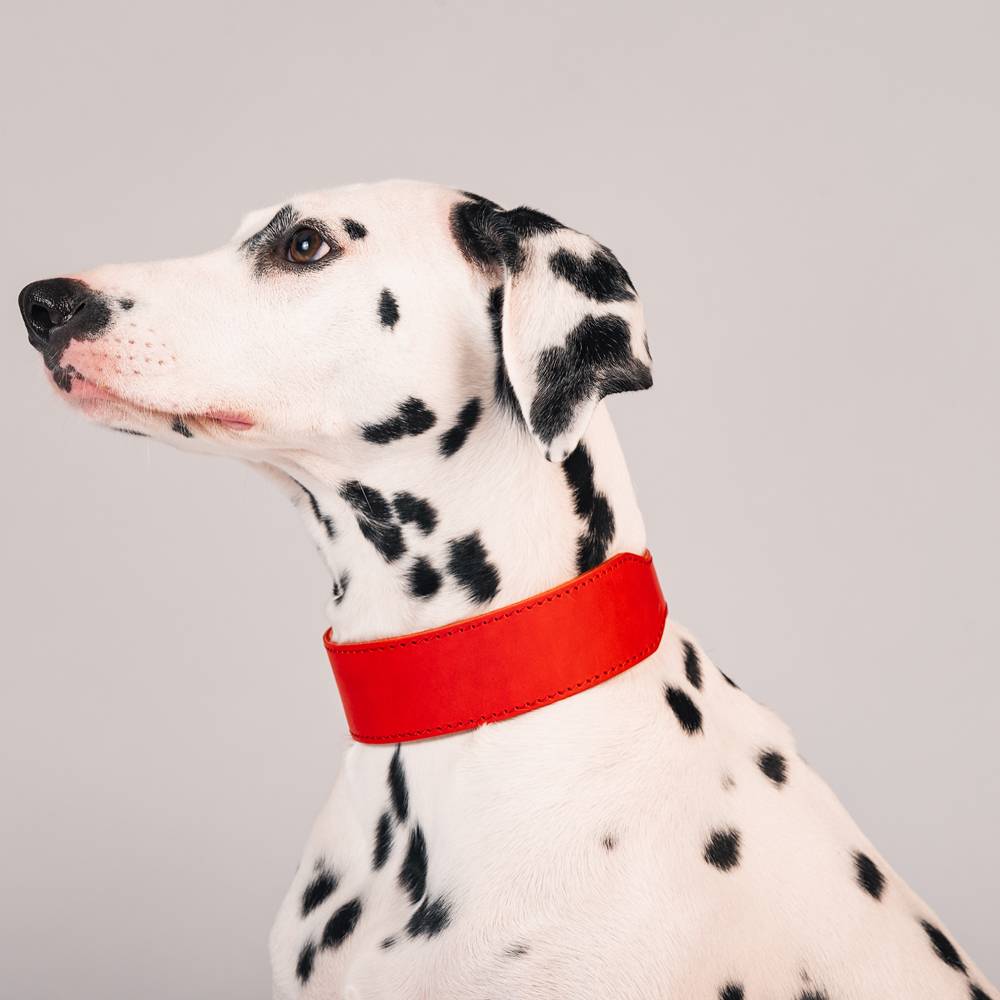 Классический ошейник для собак с расширением спереди. Сделан из двух слоев мягкой кожи и оснащен кольцом для поводка.