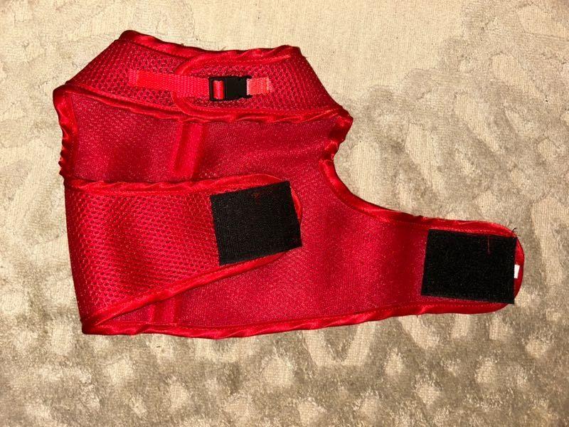 - Удобная петелька на спинке шлейки для крепления поводка.