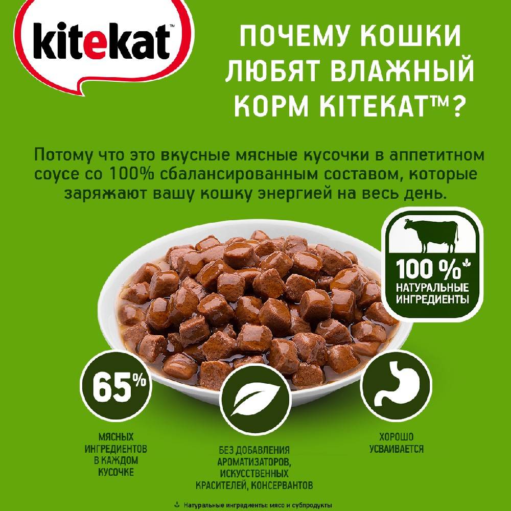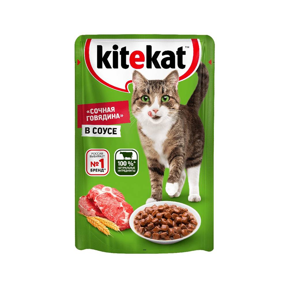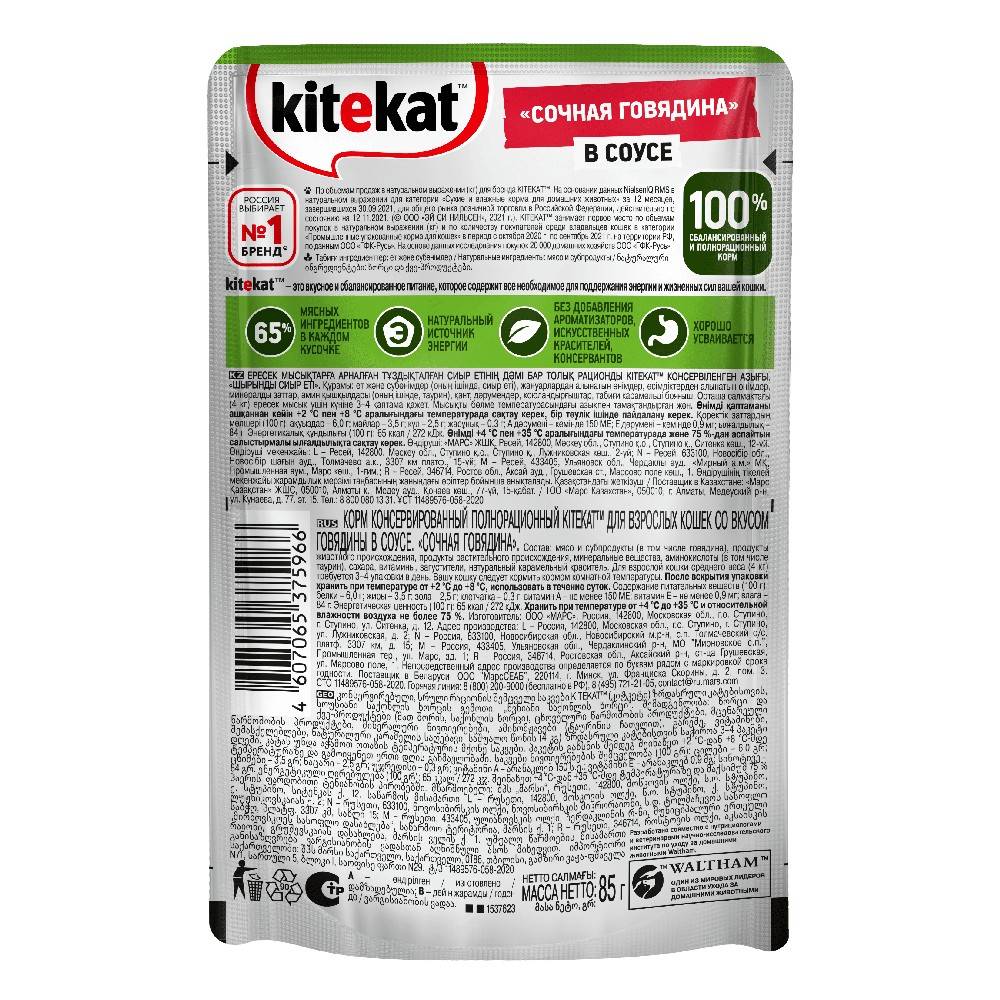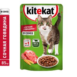 Kitekat Влажный корм (пауч) для кошек, с говядиной в соусе, 85 гр.