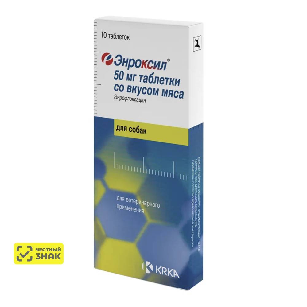 Энроксил таблетки со вкусом мяса применяют для лечения собак и кошек при заболеваниях органов дыхания, желудочно-кишечного тракта и мочеполовой системы, инфекций мягких тканей и отитов, инфицированных ран и других заболеваний бактериальной и микоплазменной этиологии, возбудители которых чувствительны к энрофлоксацину.Дозы и способ применения: