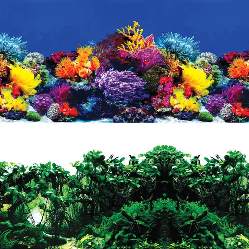 Двусторонний аквариумный фон на ламинированной бумаге с красочными фотографиями подводного мира.