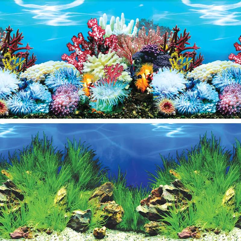 Двусторонний аквариумный фон на ламинированной бумаге с красочными фотографиями подводного мира.