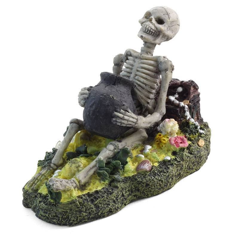 Этот функциональный и максимально реалистичный грот в виде скелета с кувшином - незаменимый элемент для оригинального оформления любых пресноводных аквариумов.