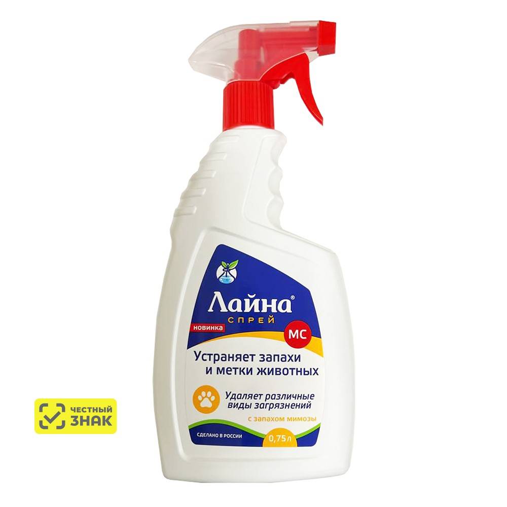 Средство «Лайна-МС спрей» предназначено для экстренного устранения запаха и загрязнений с поверхностей в домах с животными.