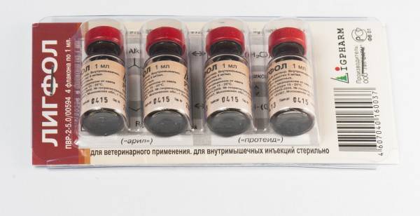 Инъекции лигфола болезненны. Животное может беспокоиться в течение 20-30 минут после введения препарата.