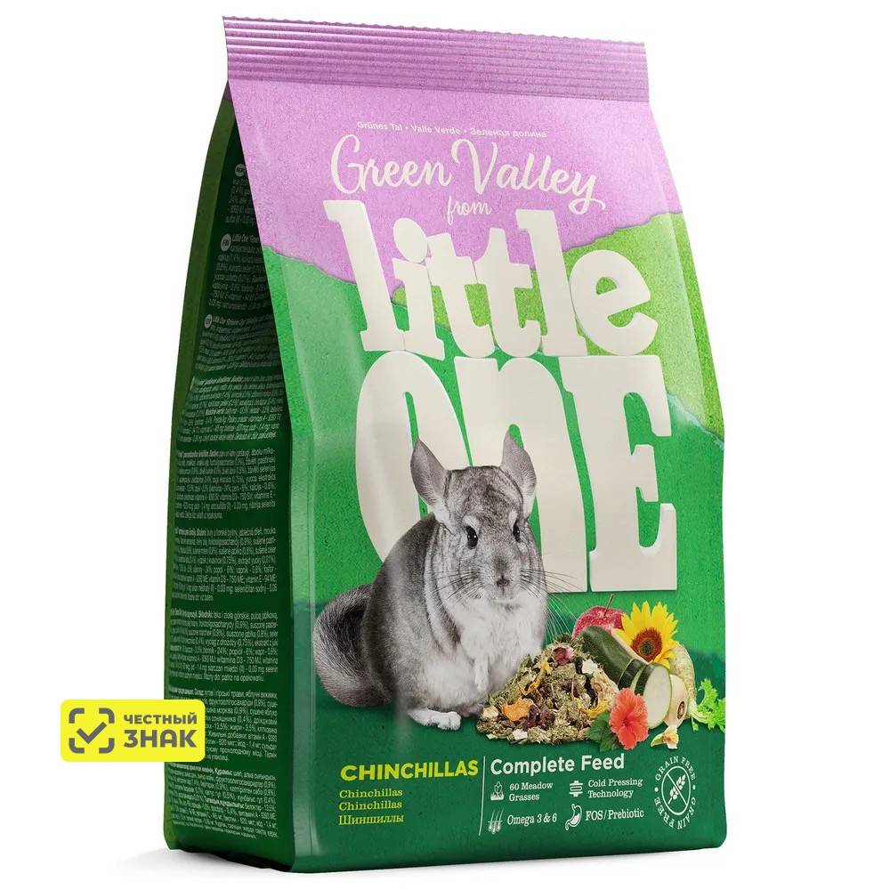 Little One «Зеленая долина» — это полнорационный беззерновой корм, разработанный с учетом пищевых потребностей и предпочтений шиншилл.