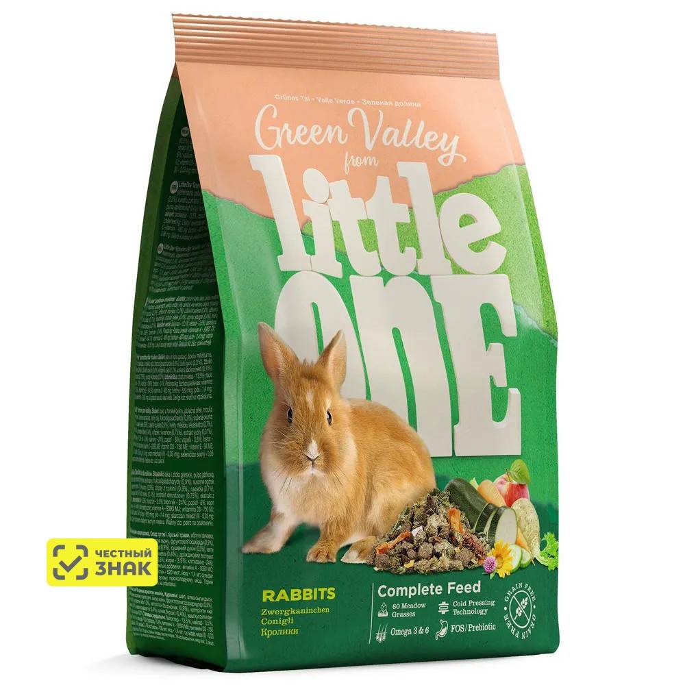 Little One «Зеленая долина» — это полнорационный беззерновой корм, разработанный с учетом пищевых потребностей и предпочтений кроликов.